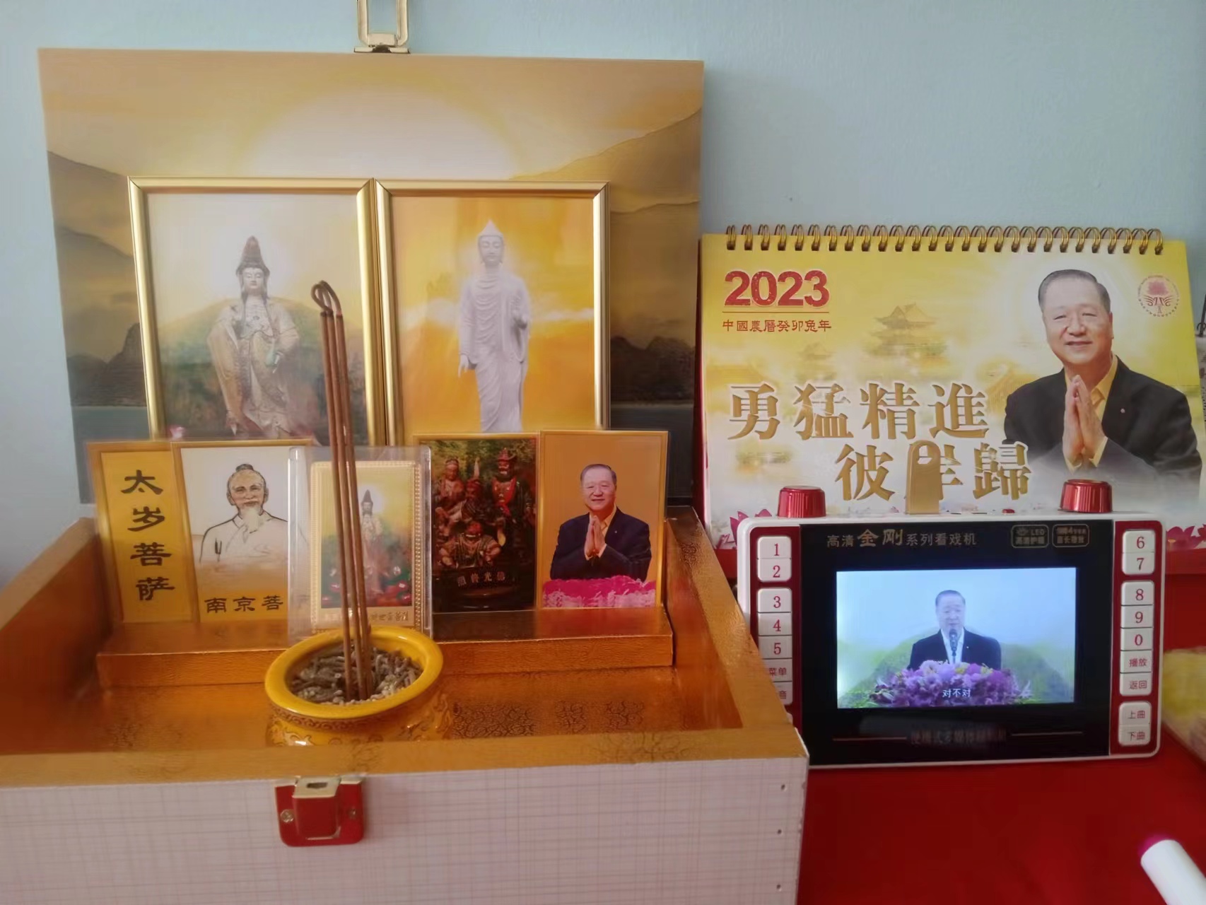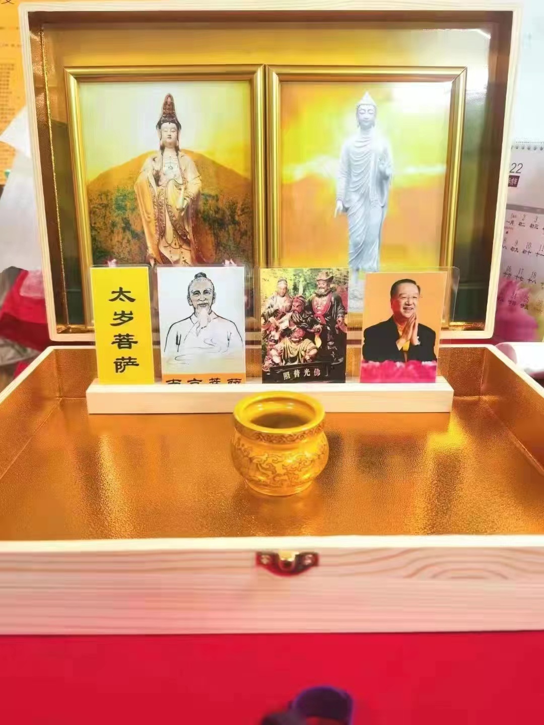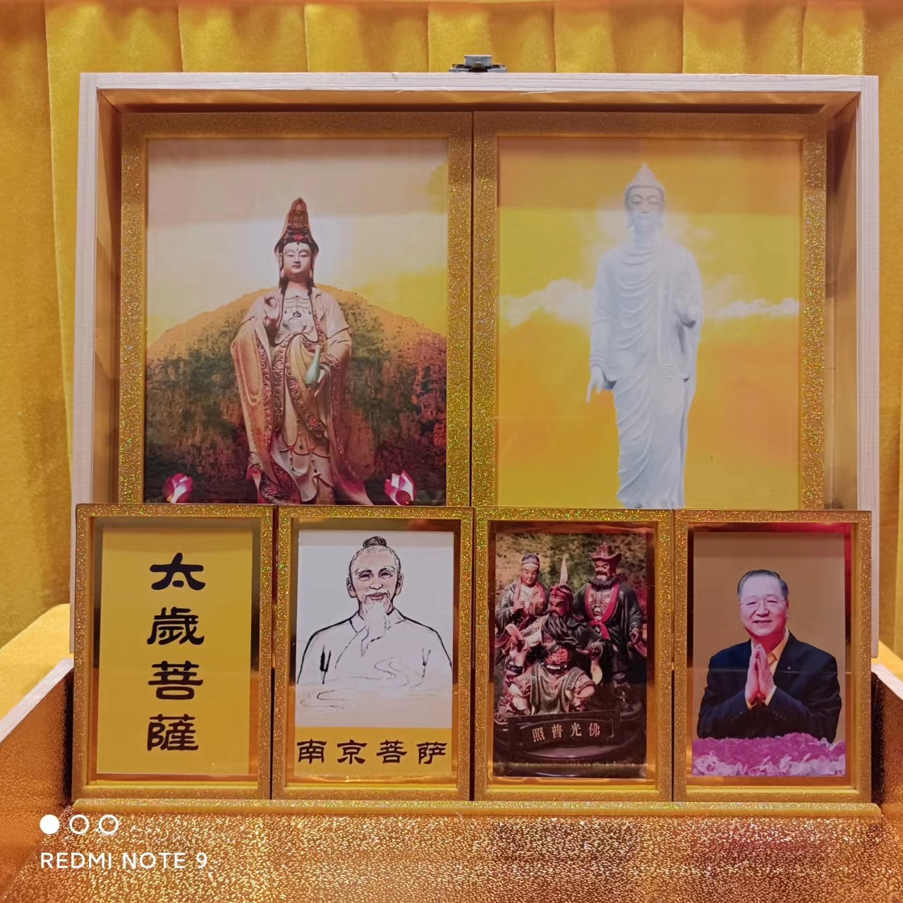 女听众:可以把“太岁菩萨”四个字印在师父照片上,放在小佛台上一起供吗?