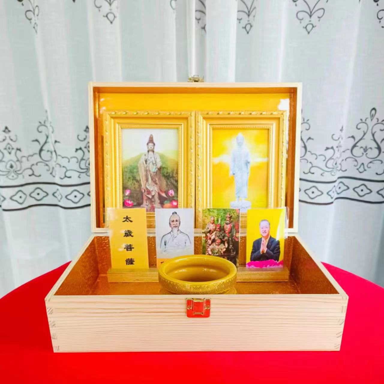 这个书桌上的佛台,不能作为正规佛台跪拜。如果家中尚未供奉正规佛台,但是想要在佛台前跪拜祈求或烧送XFZ,请单独设立临时佛台(临时佛台需要正规供奉香炉、水杯、油灯等,临时佛台不同于此类书桌上的小佛台)。